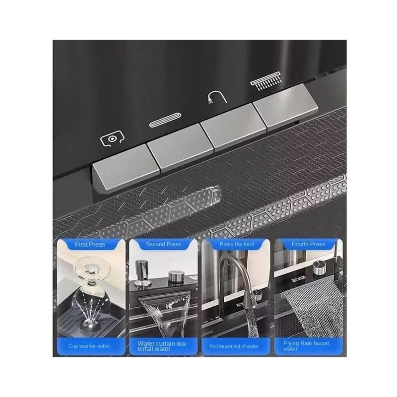 وجه تمایز اصلی این سینک (Kitchen Sinks)، وجود پنج کلید پیانویی هوشمند در قسمت بالایی آن است؛ دکمههایی که هر یک عملکردی متفاوت و جذاب دارند: