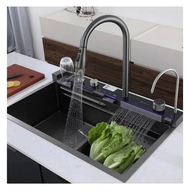 کاربرد این سینک فقط محدود به شستشوی ظروف نیست؛ بلکه برای آبگیری مواد غذایی، تصفیه آب، شستشوی لیوان و حتی تنظیم آب به‌صورت فشار پرده‌ای یا آبشاری گزینه‌های مختلفی فراهم می‌سازد. این ویژگی‌ها، آن را از سایر مدل‌های معمولی متمایز می‌کند و به محصولی چندکاره و هوشمند تبدیل کرده است.