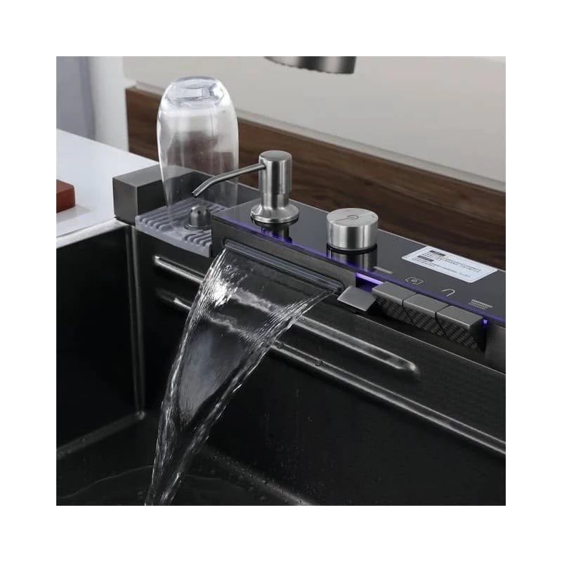 وجه تمایز اصلی این سینک (Kitchen Sinks)، وجود پنج کلید پیانویی هوشمند در قسمت بالایی آن است؛ دکمه‌هایی که هر یک عملکردی متفاوت و جذاب دارند: